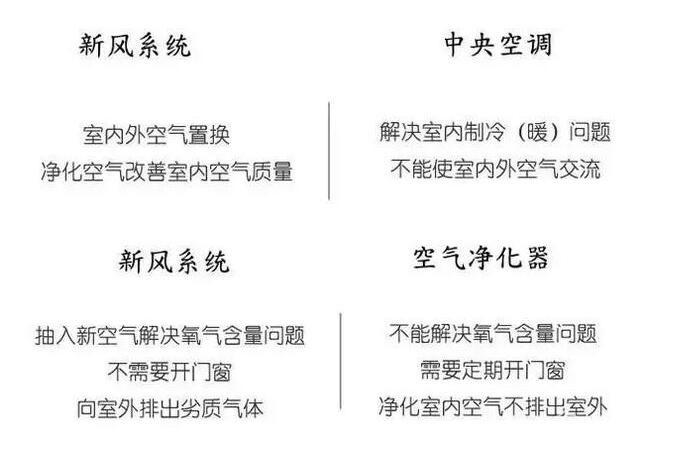 在我們的住宅市場環境中,中央空調是室內進行空氣可以循環,主要研究解決中國室內冷熱問題,為了提高節能的考慮,空調是在密閉空間內對空氣的制冷技術或者制熱,一般企業不會從室外活動引入我國空氣。而新風系統是從室外把新鮮空氣吸入室內,通過各種管道管理系統,輸送到每個不同房間,同時把室內的污濁空氣能夠通過回風管道排出室外,這樣在不開窗戶的前提下,實現城市空氣的良好發展置換。